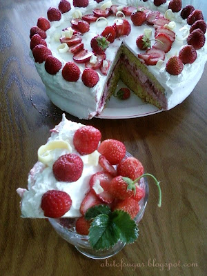 In sfarsit, pot si eu profita in plin de sezonul capunicilor:x. Desi nu a iesit intocmai cum planuisem, tortul s-a dovedit a fi un succes.Este un alt mod de a servi capsuni cu frisca…insa intr-un mod diferit, imbunatatit;;)